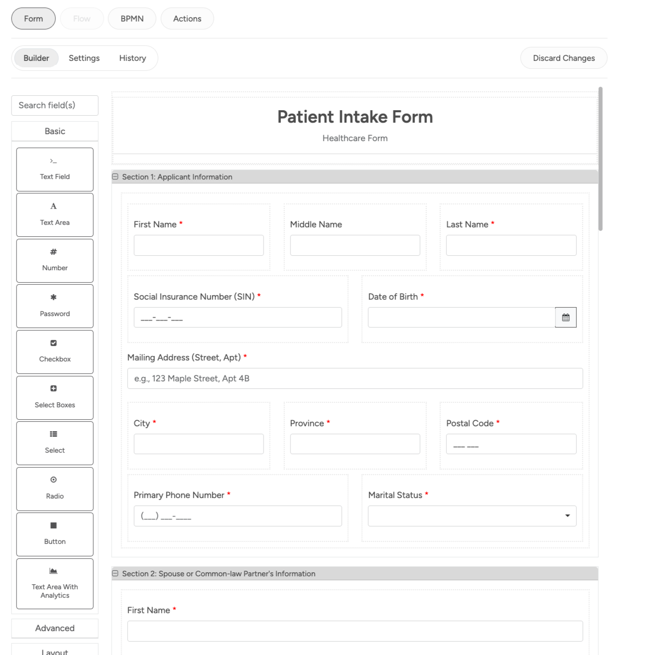 Provide input requirements such as “Patient intake form for healthcare” and let Flow-E interpret the fields.